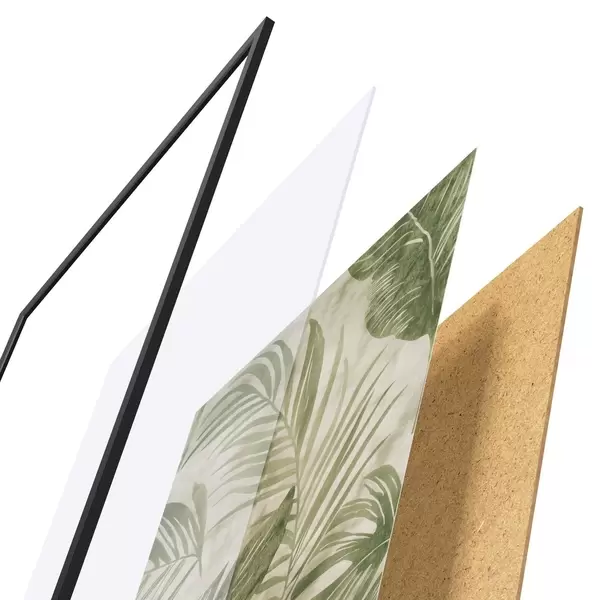 Das Poster besteht aus einem Rahmen, Plexiglas, einem gedruckten Bild und einer Rückwand aus Spanplatten. Dank der Halterungen auf der Rückseite kann das Poster sofort an die Wand gehängt werden.