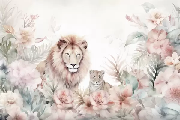 Poster Löwen im tropischen Dickicht, Aquarellimitation Nr f47640