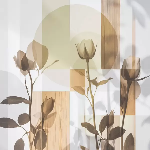 Poster Abstraktion mit Blumen und geometrischen Formen Nr f47654