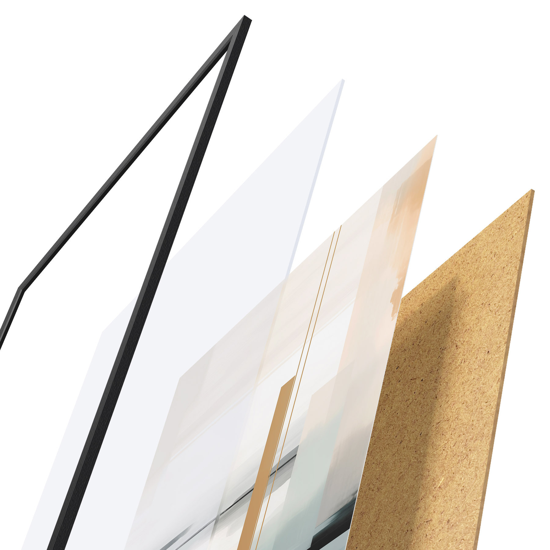 Das Poster besteht aus einem Rahmen, Plexiglas, einem gedruckten Bild und einer Rückwand aus Spanplatten. Dank der Halterungen auf der Rückseite kann das Poster sofort an die Wand gehängt werden.