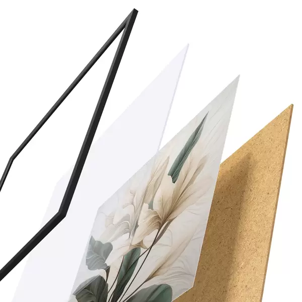 Das Poster besteht aus einem Rahmen, Plexiglas, einem gedruckten Bild und einer Rückwand aus Spanplatten. Dank der Halterungen auf der Rückseite kann das Poster sofort an die Wand gehängt werden.