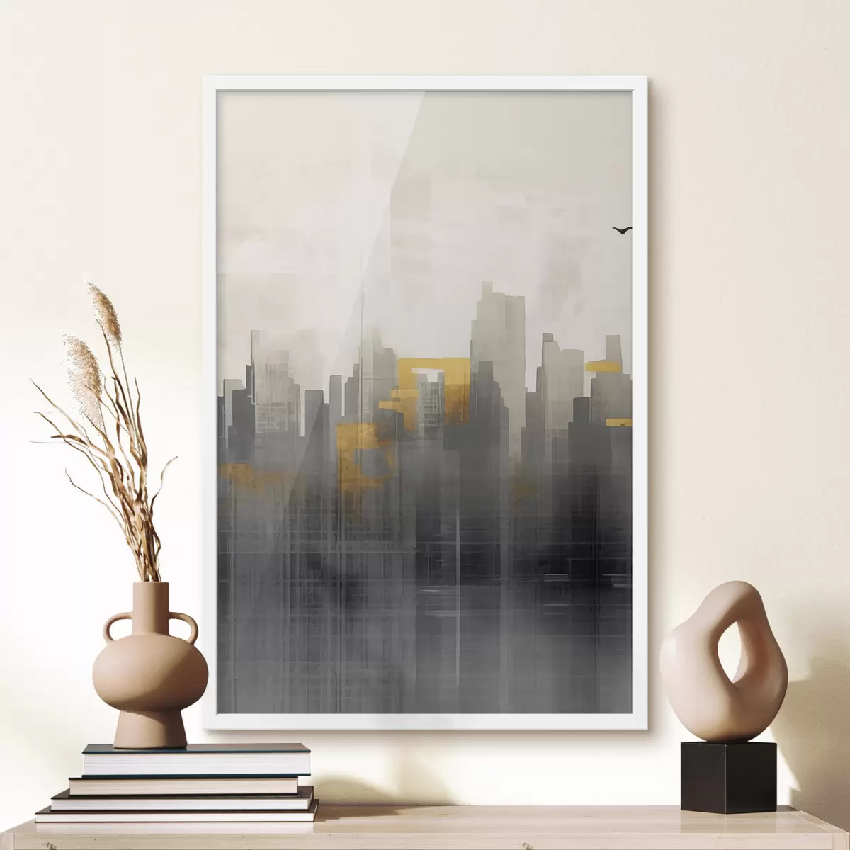 Das Poster besteht aus einem Rahmen, Plexiglas, einem gedruckten Bild und einer Rückwand aus Spanplatten. Dank der Halterungen auf der Rückseite kann das Poster sofort an die Wand gehängt werden.
