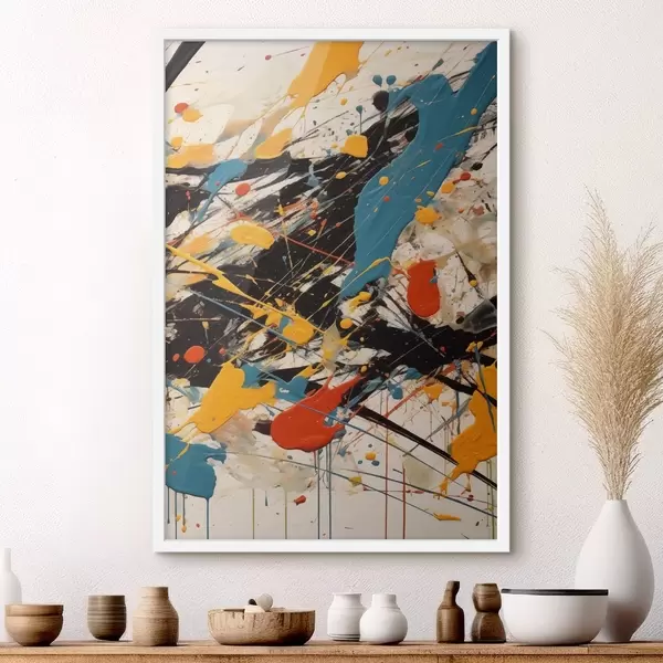 Das Poster besteht aus einem Rahmen, Plexiglas, einem gedruckten Bild und einer Rückwand aus Spanplatten. Dank der Halterungen auf der Rückseite kann das Poster sofort an die Wand gehängt werden.