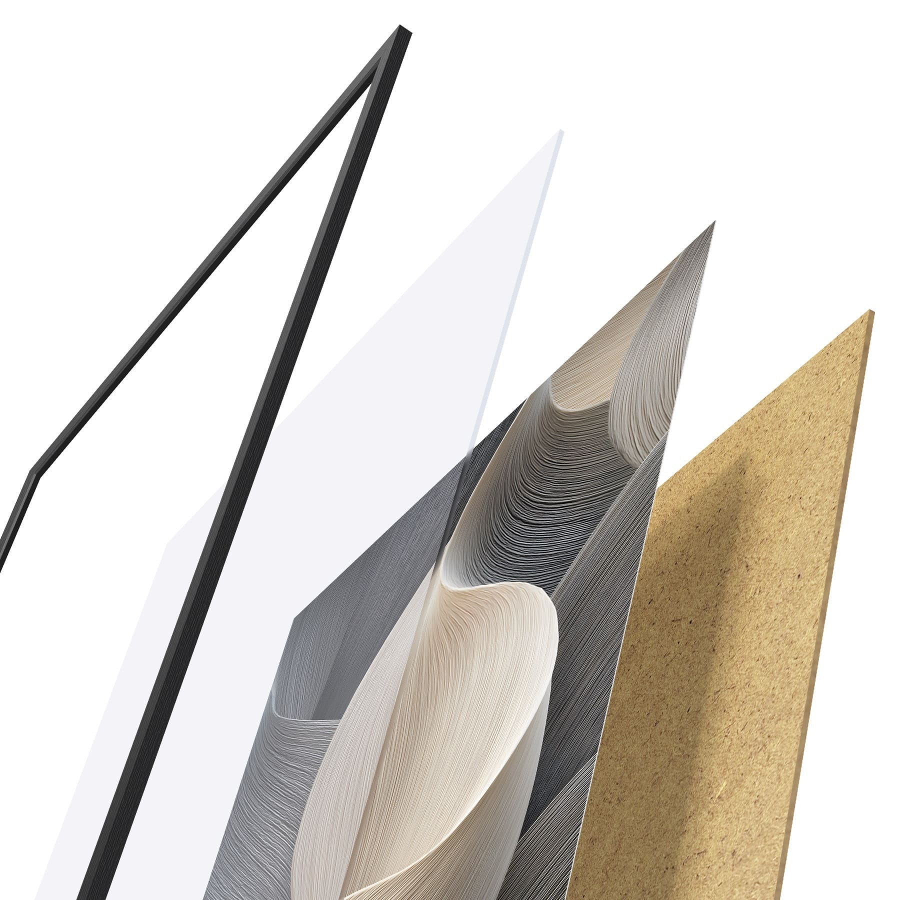 Das Poster besteht aus einem Rahmen, Plexiglas, einem gedruckten Bild und einer Rückwand aus Spanplatten. Dank der Halterungen auf der Rückseite kann das Poster sofort an die Wand gehängt werden.