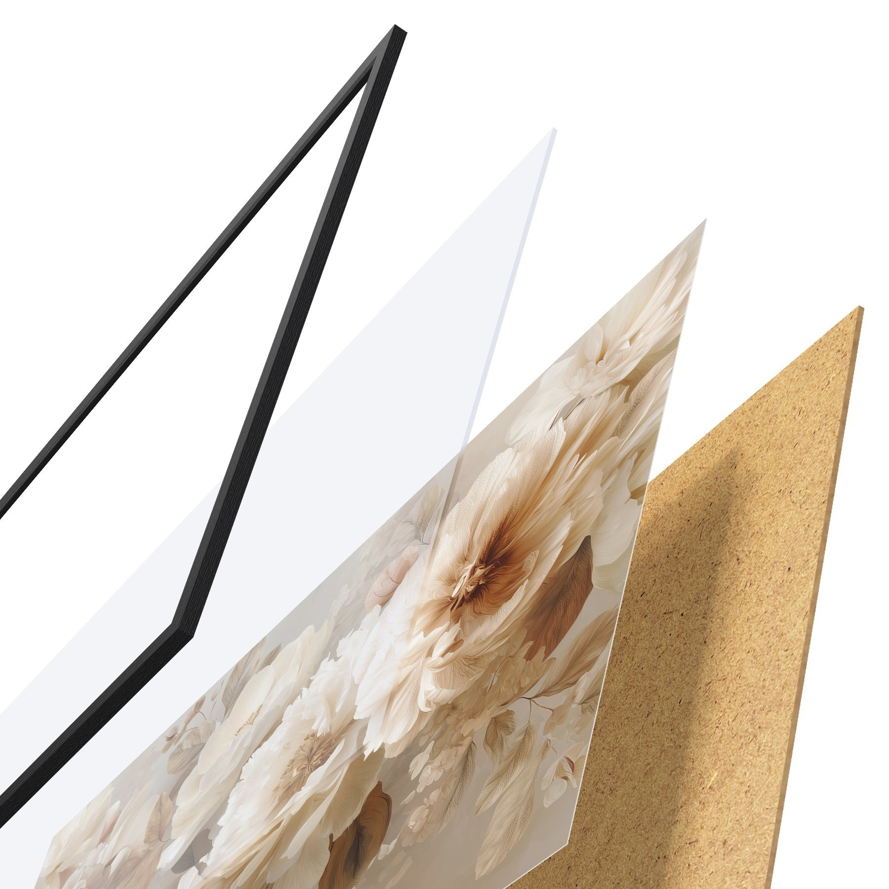 Das Poster besteht aus einem Rahmen, Plexiglas, einem gedruckten Bild und einer Rückwand aus Spanplatten. Dank der Halterungen auf der Rückseite kann das Poster sofort an die Wand gehängt werden.