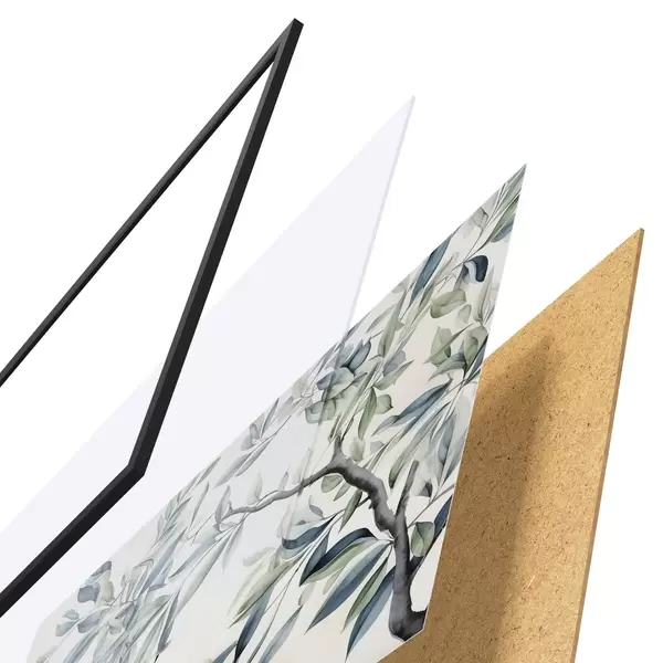 Das Poster besteht aus einem Rahmen, Plexiglas, einem gedruckten Bild und einer Rückwand aus Spanplatten. Dank der Halterungen auf der Rückseite kann das Poster sofort an die Wand gehängt werden.