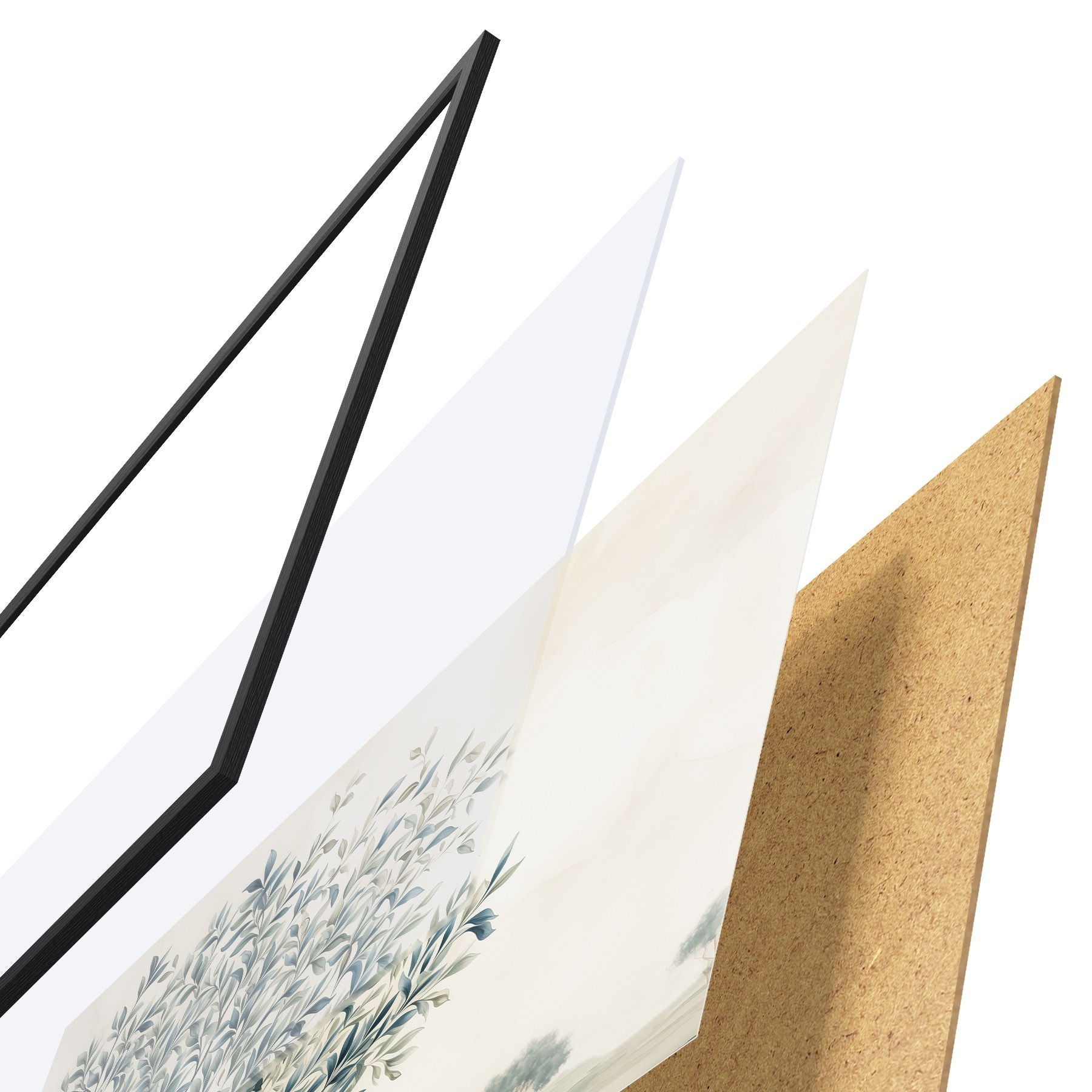 Das Poster besteht aus einem Rahmen, Plexiglas, einem gedruckten Bild und einer Rückwand aus Spanplatten. Dank der Halterungen auf der Rückseite kann das Poster sofort an die Wand gehängt werden.