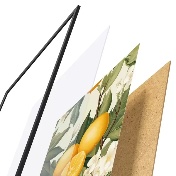 Das Poster besteht aus einem Rahmen, Plexiglas, einem gedruckten Bild und einer Rückwand aus Spanplatten. Dank der Halterungen auf der Rückseite kann das Poster sofort an die Wand gehängt werden.