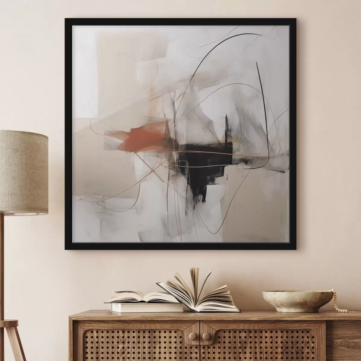 Das Poster besteht aus einem Rahmen, Plexiglas, einem gedruckten Bild und einer Rückwand aus Spanplatten. Dank der Halterungen auf der Rückseite kann das Poster sofort an die Wand gehängt werden.