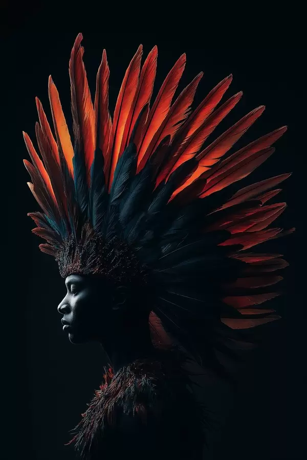 Poster Porträt mit Federn Nr f47736