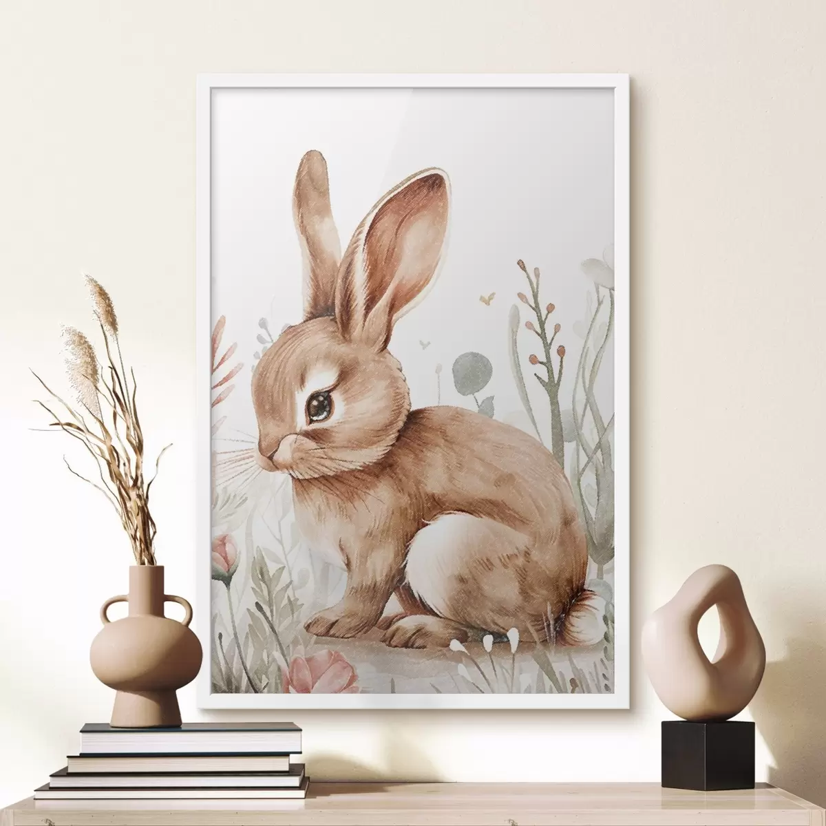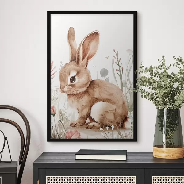 Poster Süßes Häschen in Blumen, Bleistift-Effekt f47741