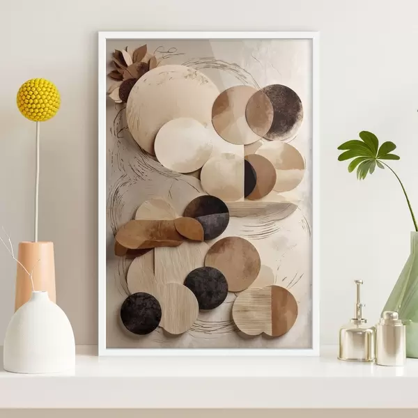 Poster Komposition aus runden Formen in warmen Farbtönen Nr f47751