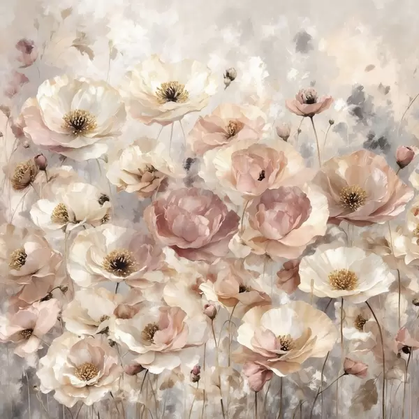 Poster Feld voller heller Blumen in sanften Farbtönen f47757