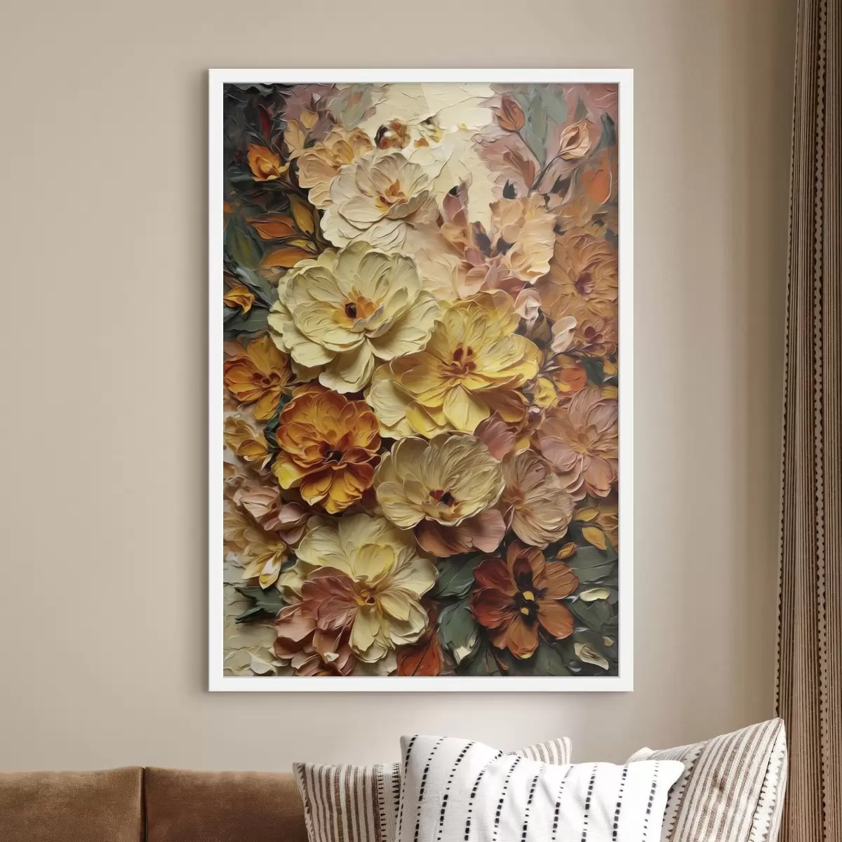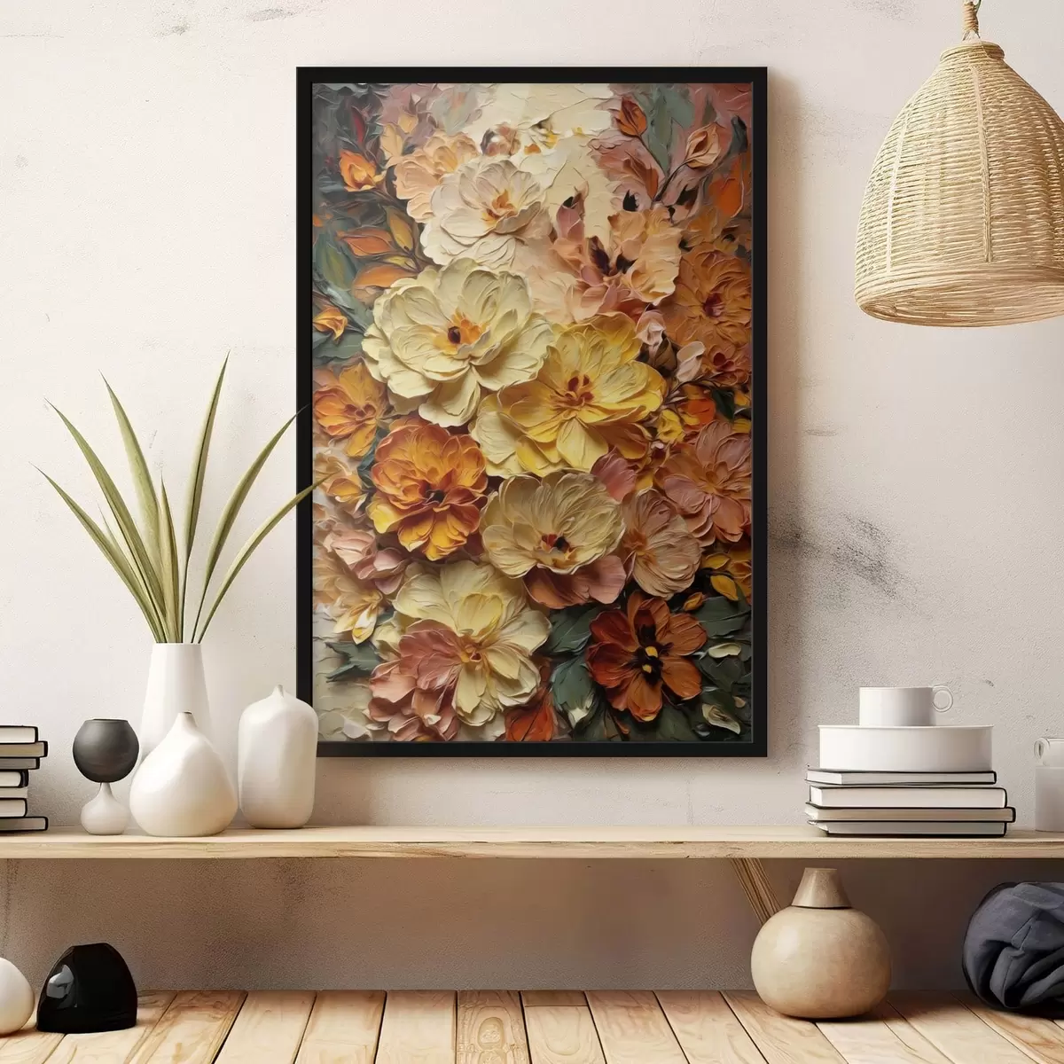 Poster Üppige Komposition aus leuchtenden Blumen in warmen Farbtönen Nr f47760