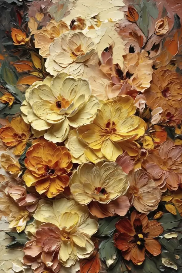 Poster Üppige Komposition aus leuchtenden Blumen in warmen Farbtönen Nr f47760