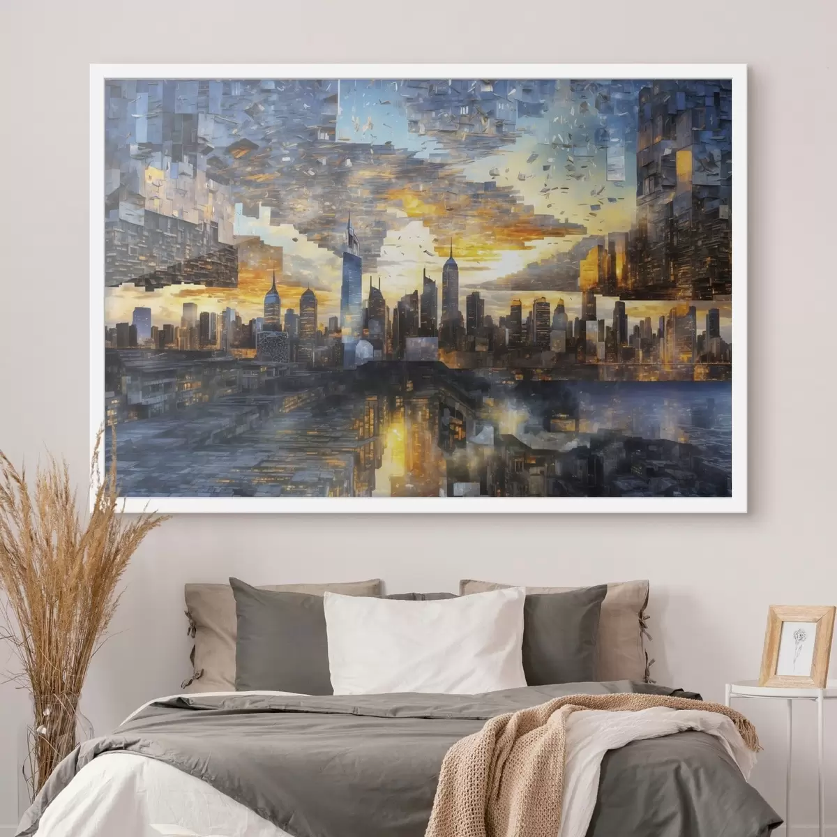 Poster Fantastisches Stadtbild mit fragmentiertem Himmel f47768