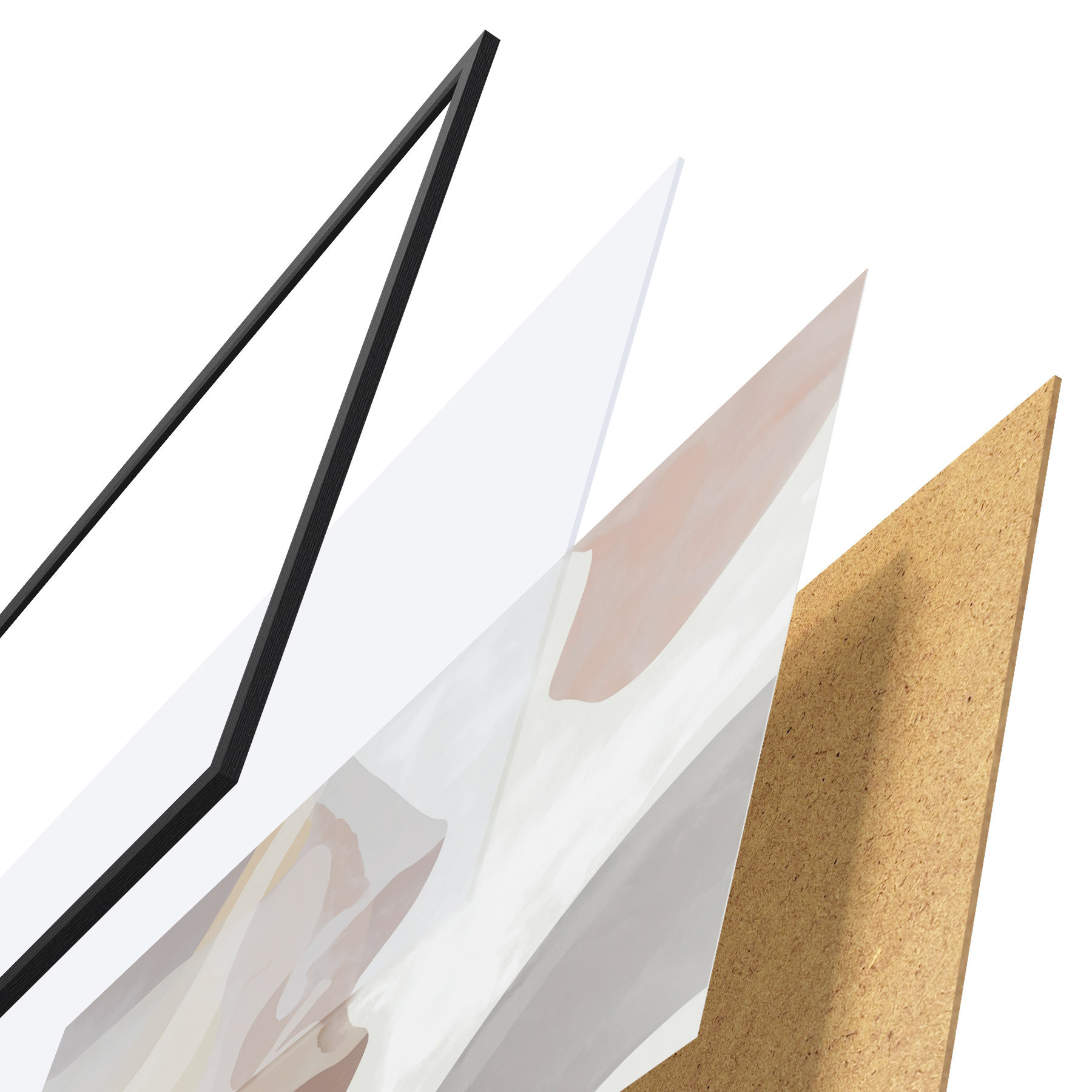 Das Poster besteht aus einem Rahmen, Plexiglas, einem gedruckten Bild und einer Rückwand aus Spanplatten. Dank der Halterungen auf der Rückseite kann das Poster sofort an die Wand gehängt werden.