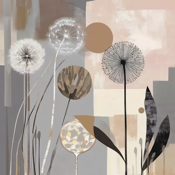 Poster Abstraktion mit Löwenzahn und Pflanzen Nr f47776