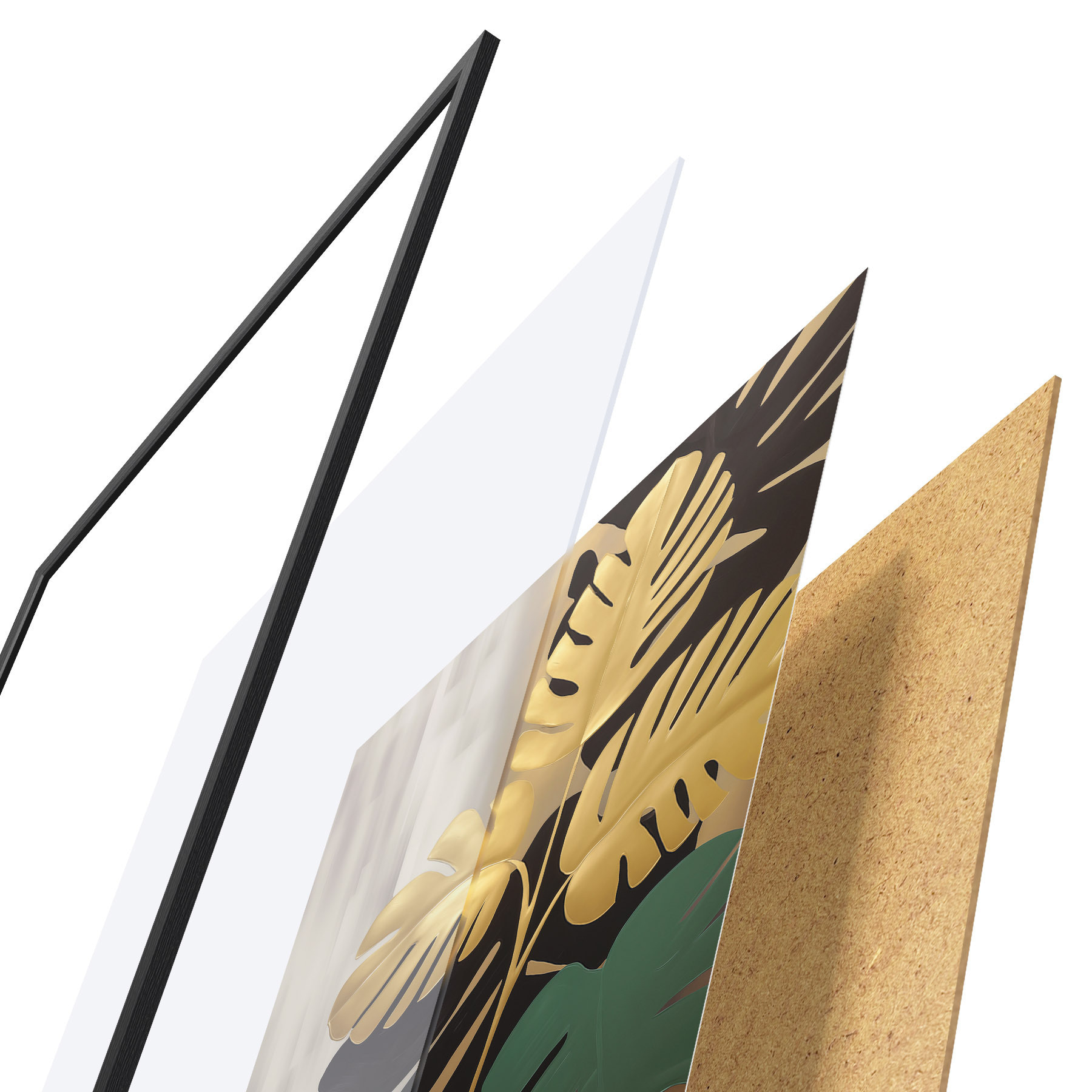 Das Poster besteht aus einem Rahmen, Plexiglas, einem gedruckten Bild und einer Rückwand aus Spanplatten. Dank der Halterungen auf der Rückseite kann das Poster sofort an die Wand gehängt werden.