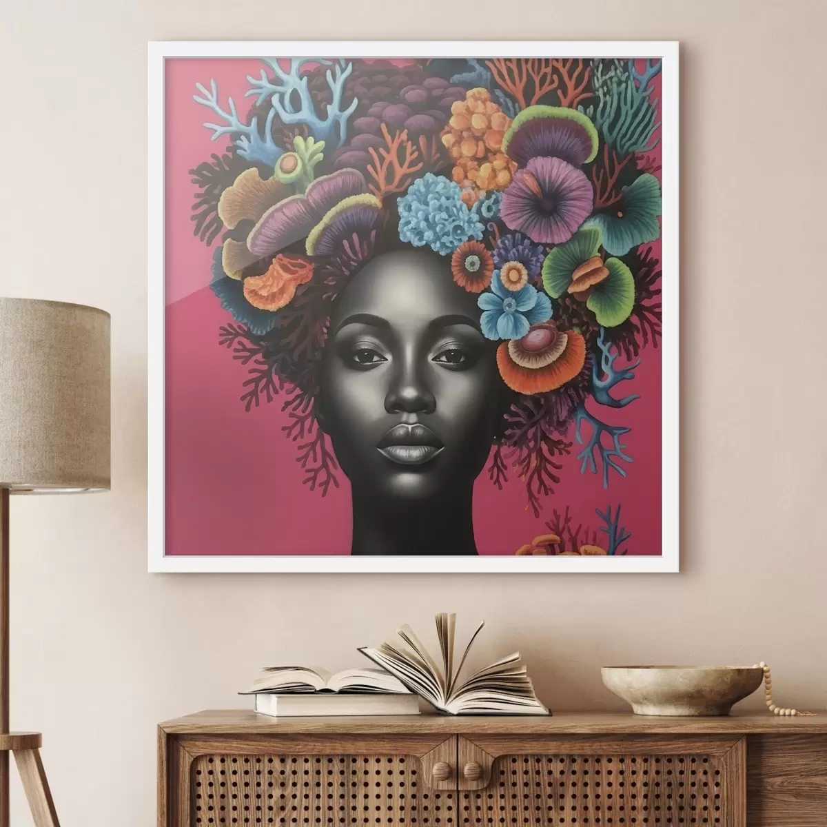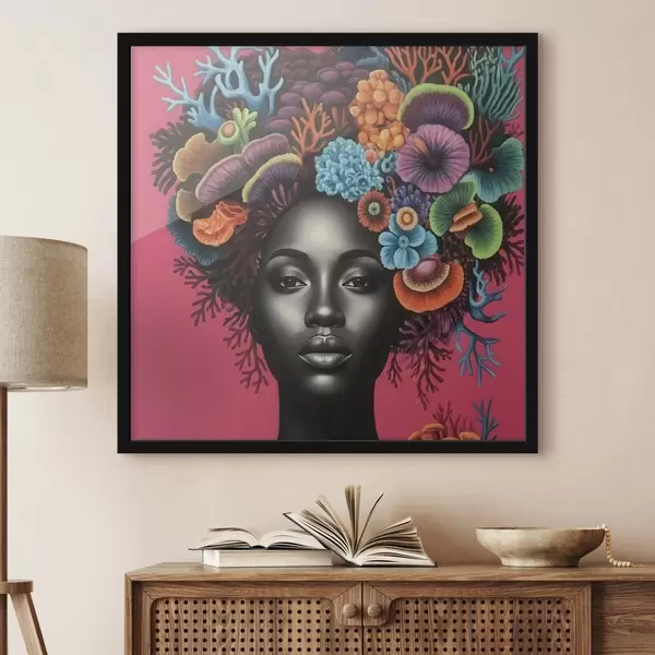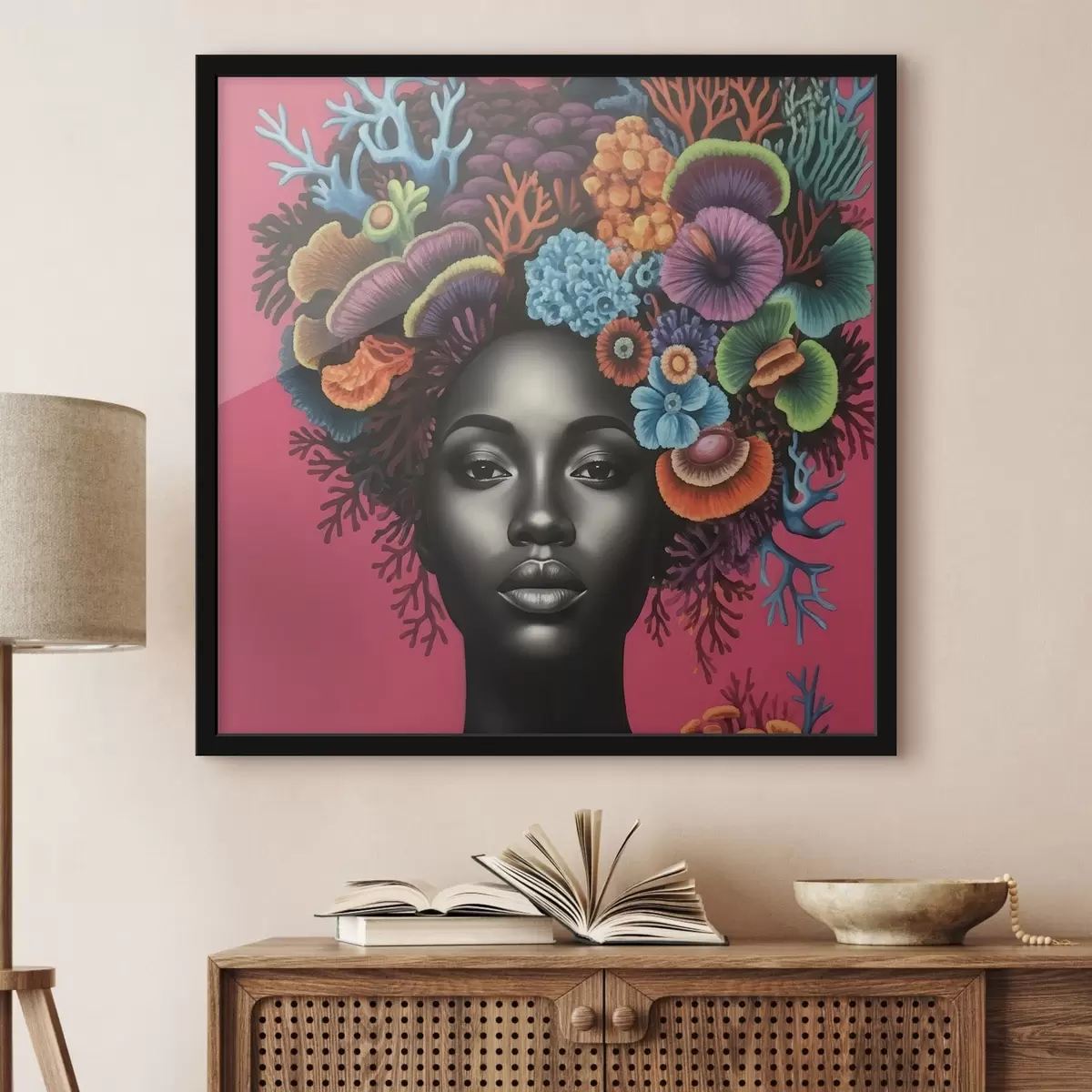 Poster Psychedelisches Porträt einer Frau mit Pilzen f47786