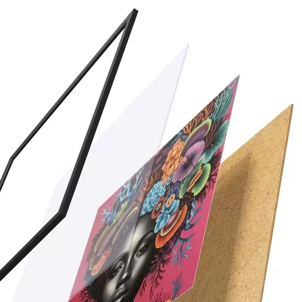 Das Poster besteht aus einem Rahmen, Plexiglas, einem gedruckten Bild und einer Rückwand aus Spanplatten. Dank der Halterungen auf der Rückseite kann das Poster sofort an die Wand gehängt werden.