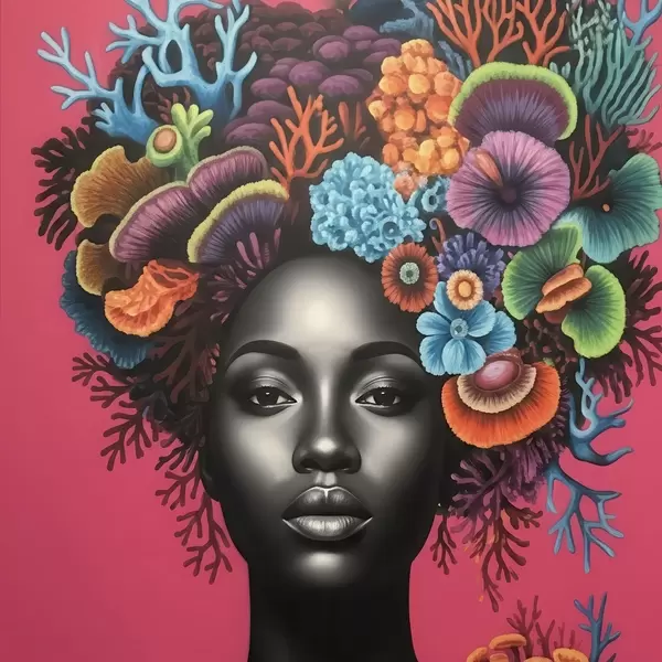 Poster Psychedelisches Porträt einer Frau mit Pilzen f47786