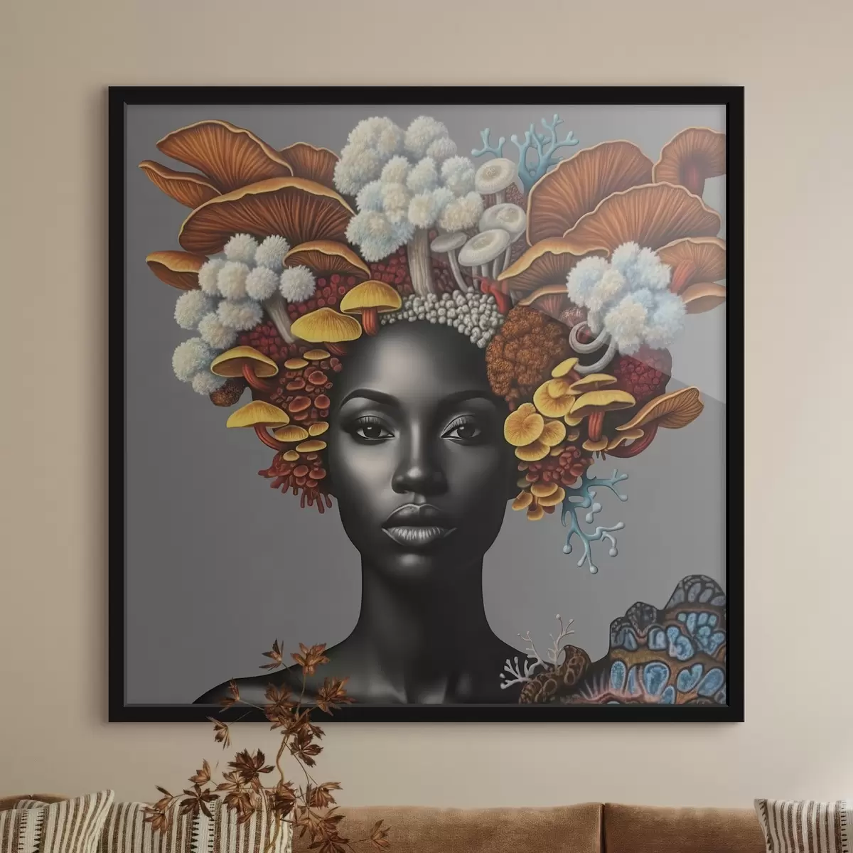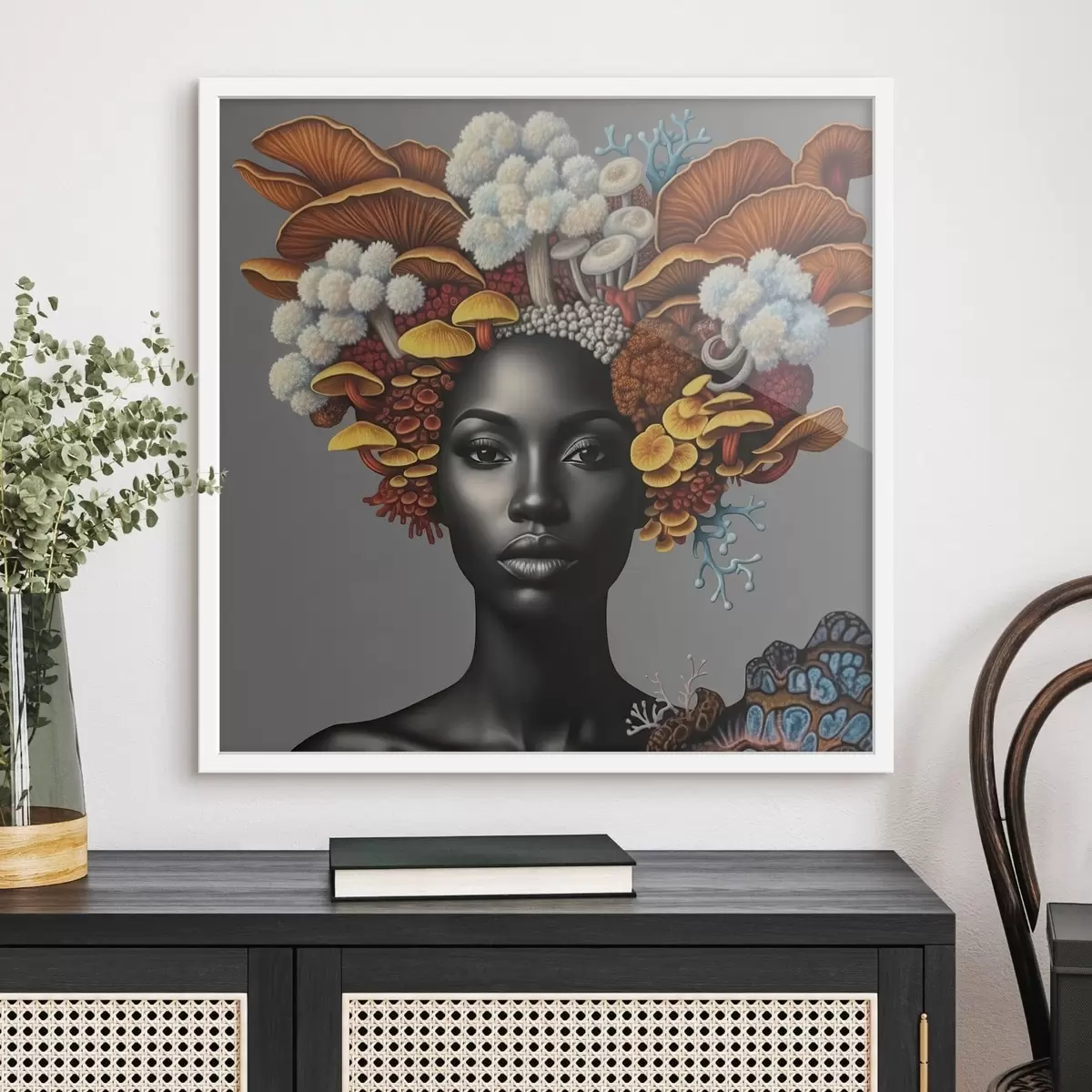 Poster Porträt einer Frau mit Pilzen f47788
