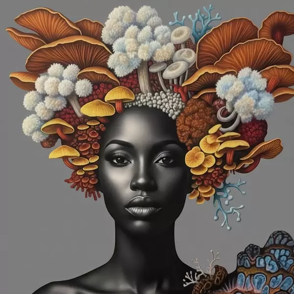Poster Porträt einer Frau mit Pilzen Nr f47788