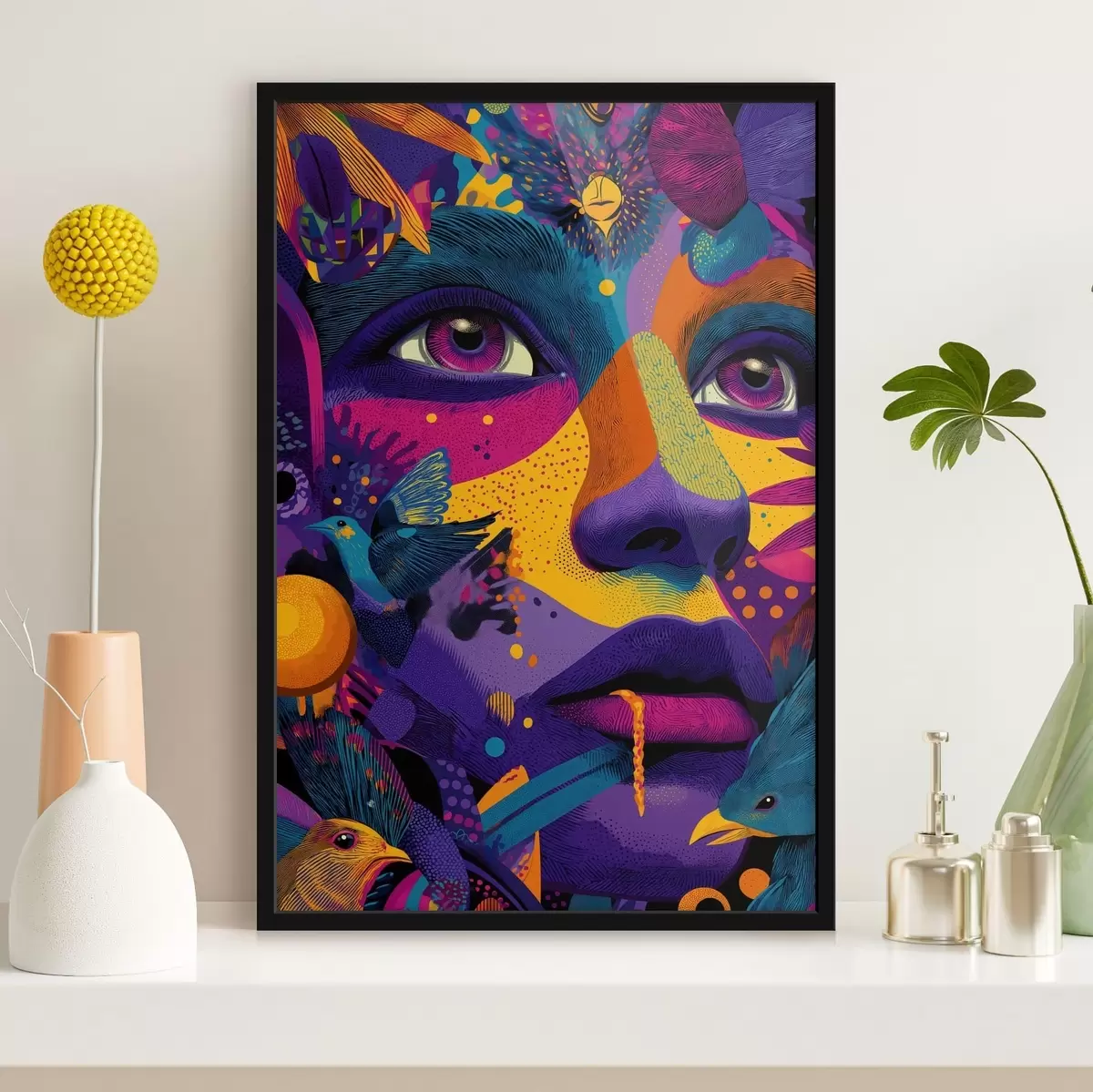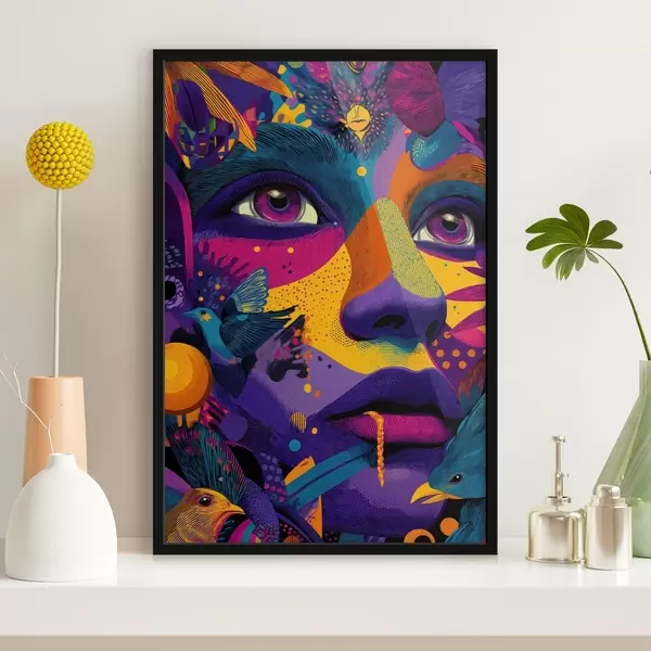 Poster Psychedelisches Porträt mit Vögeln f47790