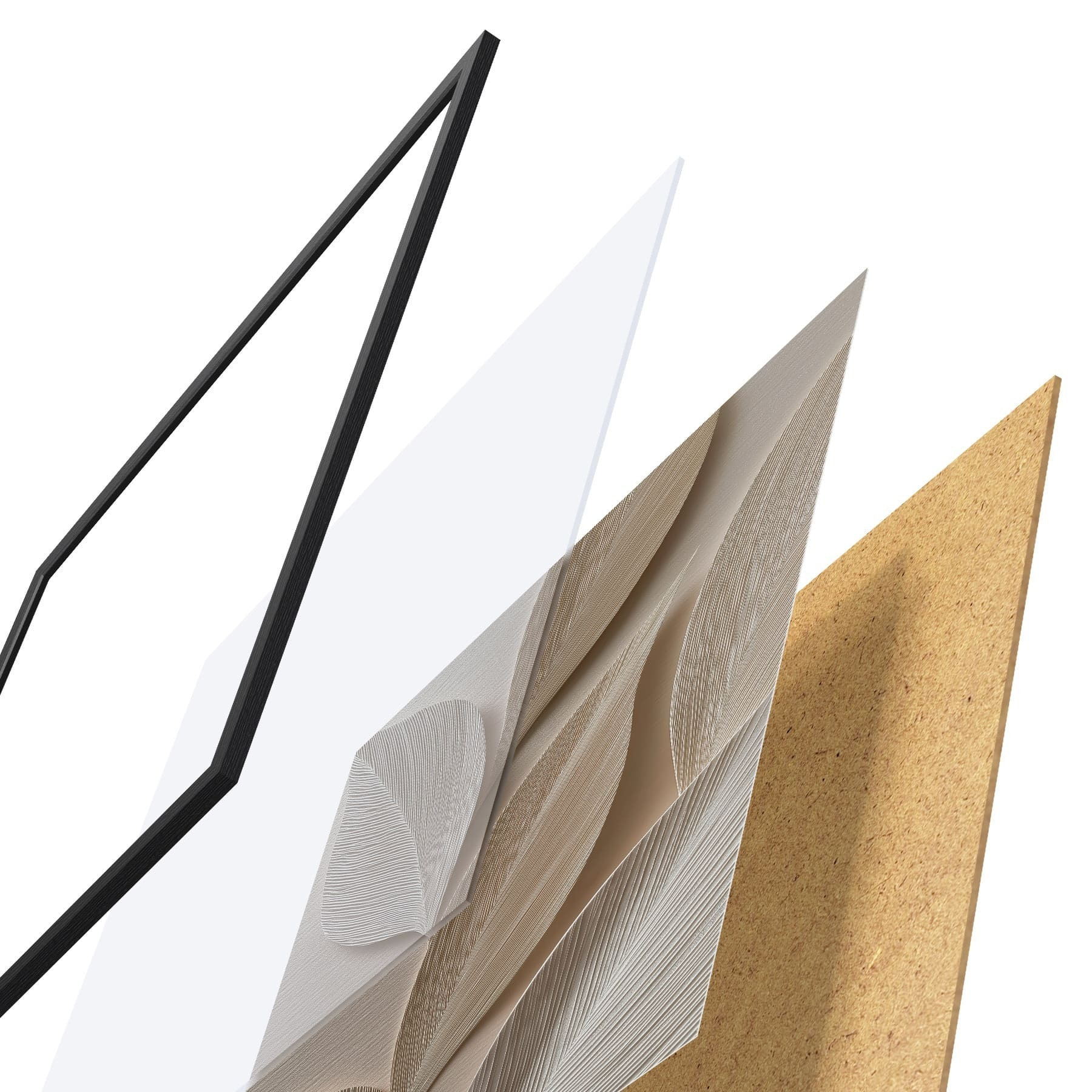 Das Poster besteht aus einem Rahmen, Plexiglas, einem gedruckten Bild und einer Rückwand aus Spanplatten. Dank der Halterungen auf der Rückseite kann das Poster sofort an die Wand gehängt werden.