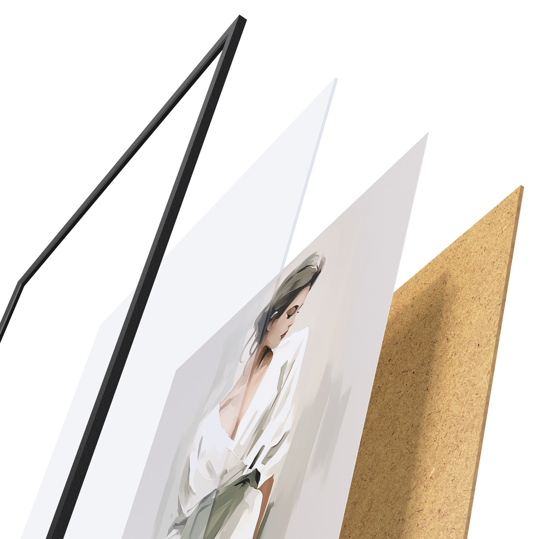 Das Poster besteht aus einem Rahmen, Plexiglas, einem gedruckten Bild und einer Rückwand aus Spanplatten. Dank der Halterungen auf der Rückseite kann das Poster sofort an die Wand gehängt werden.