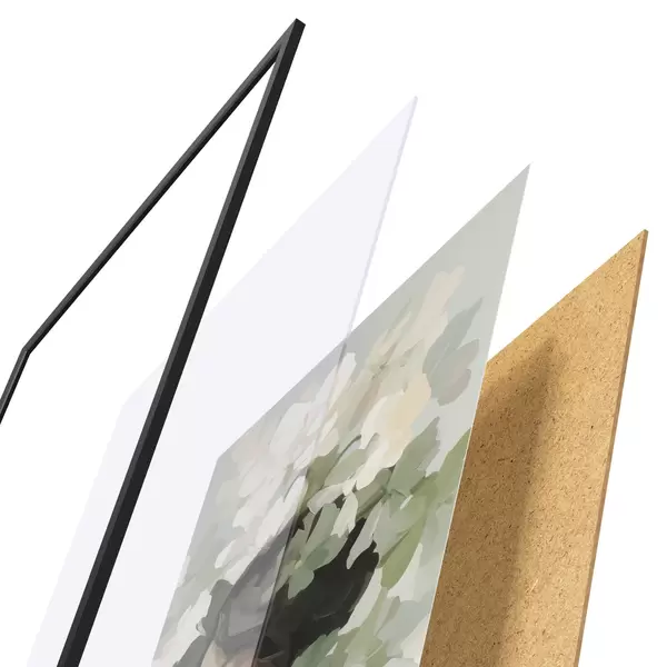 Das Poster besteht aus einem Rahmen, Plexiglas, einem gedruckten Bild und einer Rückwand aus Spanplatten. Dank der Halterungen auf der Rückseite kann das Poster sofort an die Wand gehängt werden.