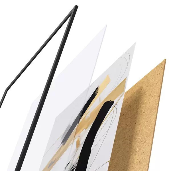 Das Poster besteht aus einem Rahmen, Plexiglas, einem gedruckten Bild und einer Rückwand aus Spanplatten. Dank der Halterungen auf der Rückseite kann das Poster sofort an die Wand gehängt werden.