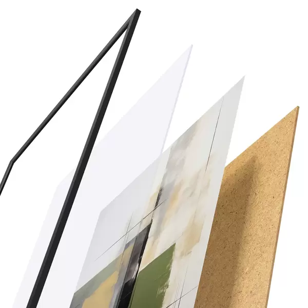 Das Poster besteht aus einem Rahmen, Plexiglas, einem gedruckten Bild und einer Rückwand aus Spanplatten. Dank der Halterungen auf der Rückseite kann das Poster sofort an die Wand gehängt werden.