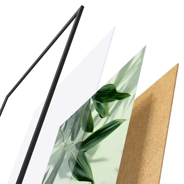 Das Poster besteht aus einem Rahmen, Plexiglas, einem gedruckten Bild und einer Rückwand aus Spanplatten. Dank der Halterungen auf der Rückseite kann das Poster sofort an die Wand gehängt werden.