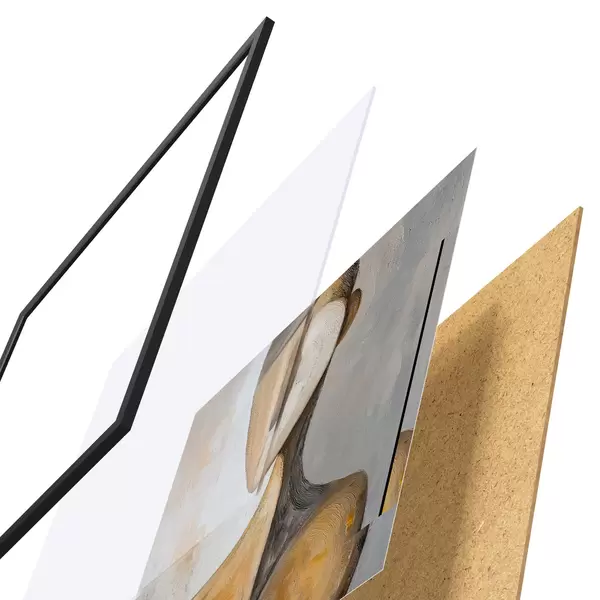 Das Poster besteht aus einem Rahmen, Plexiglas, einem gedruckten Bild und einer Rückwand aus Spanplatten. Dank der Halterungen auf der Rückseite kann das Poster sofort an die Wand gehängt werden.