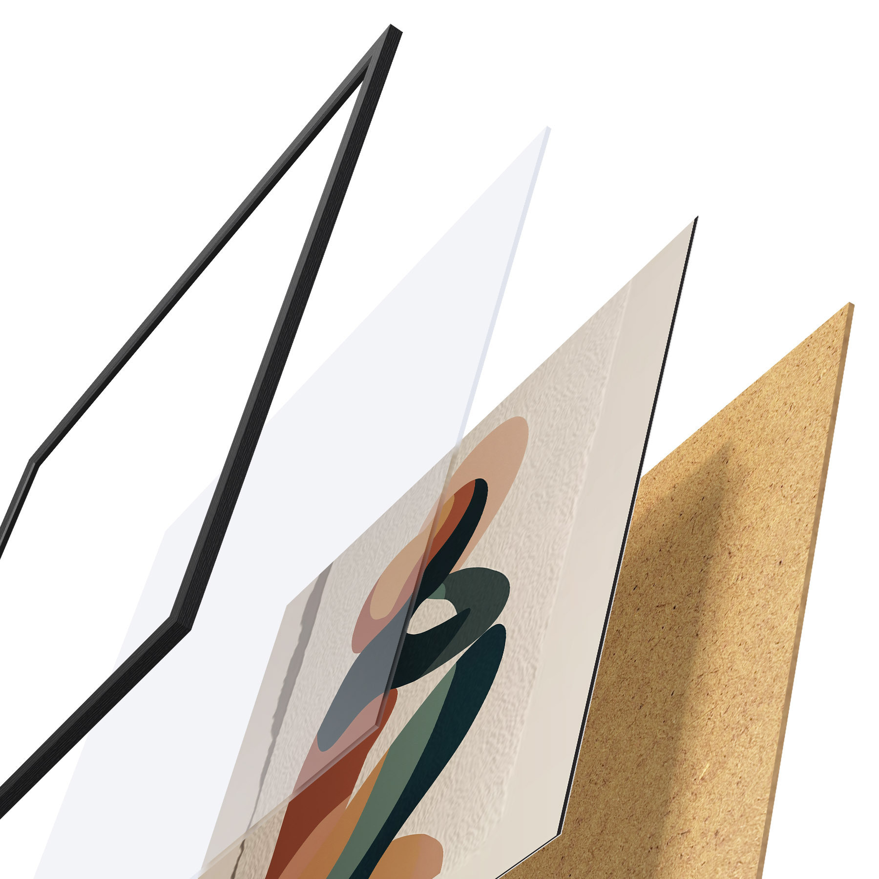 Das Poster besteht aus einem Rahmen, Plexiglas, einem gedruckten Bild und einer Rückwand aus Spanplatten. Dank der Halterungen auf der Rückseite kann das Poster sofort an die Wand gehängt werden.