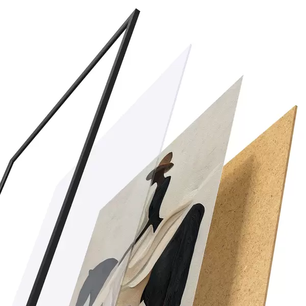 Das Poster besteht aus einem Rahmen, Plexiglas, einem gedruckten Bild und einer Rückwand aus Spanplatten. Dank der Halterungen auf der Rückseite kann das Poster sofort an die Wand gehängt werden.