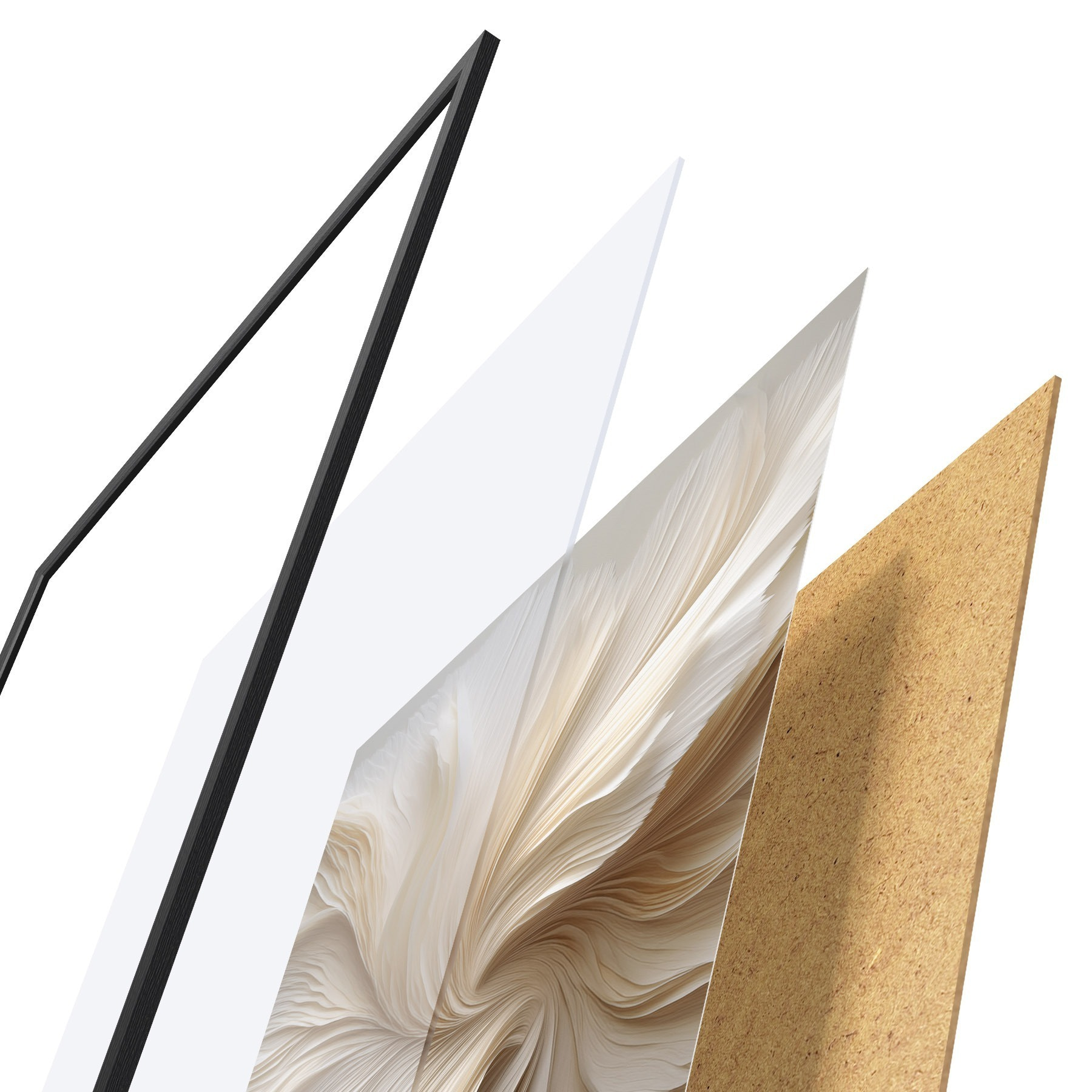 Das Poster besteht aus einem Rahmen, Plexiglas, einem gedruckten Bild und einer Rückwand aus Spanplatten. Dank der Halterungen auf der Rückseite kann das Poster sofort an die Wand gehängt werden.