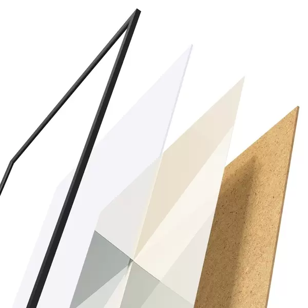 Das Poster besteht aus einem Rahmen, Plexiglas, einem gedruckten Bild und einer Rückwand aus Spanplatten. Dank der Halterungen auf der Rückseite kann das Poster sofort an die Wand gehängt werden.