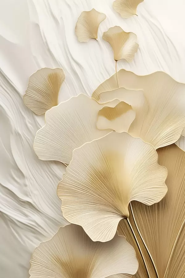 Poster Abstrakte Ginkgoblätter vor einem strukturierten, hellen Hintergrund, elegante und abstrakte Komposition Nr f47868