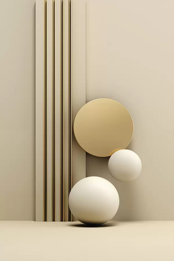 Poster Abstrakte beige moderne Kunst mit vertikalen Linien und Kugeln Nr f47871