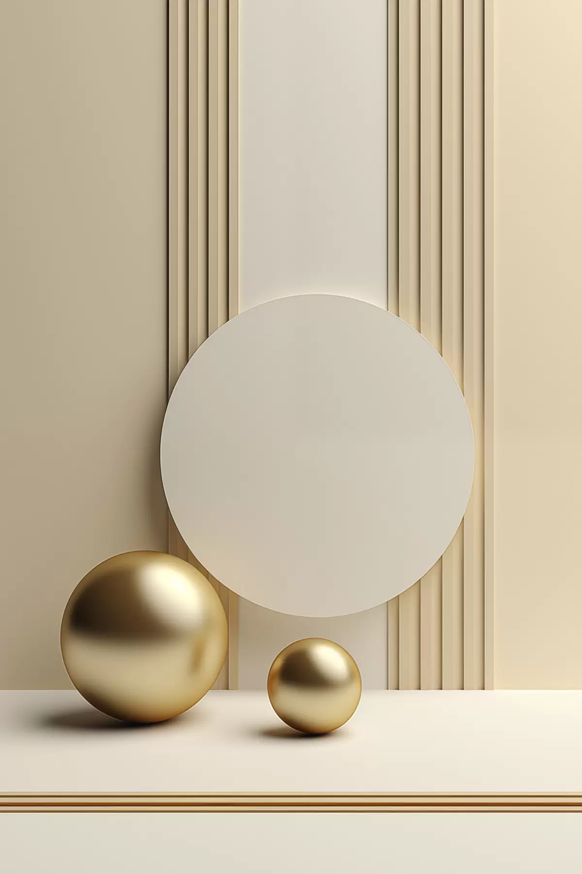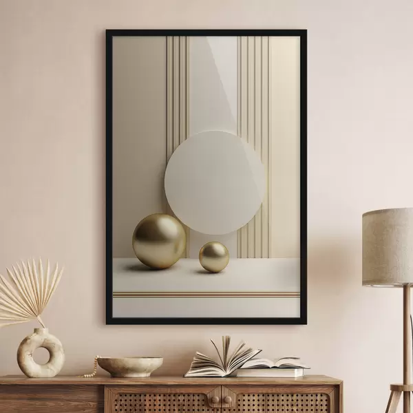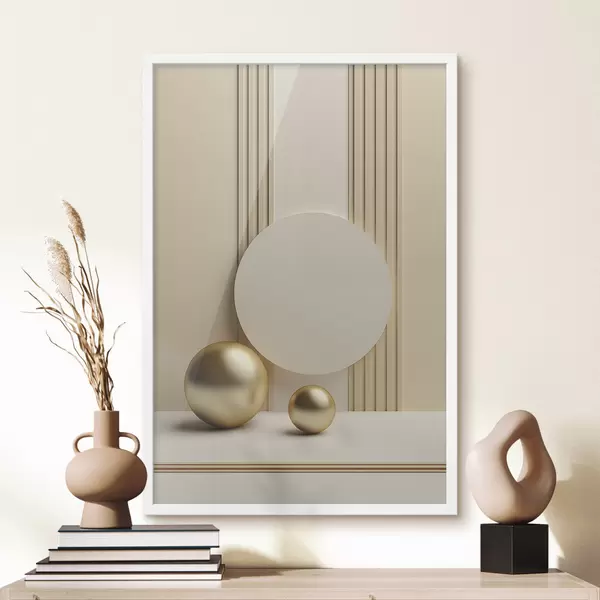 Poster Abstrakte beige moderne Kunst mit vertikalen Linien und Kugeln Nr f47872