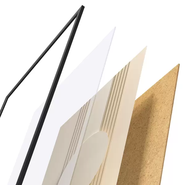 Das Poster besteht aus einem Rahmen, Plexiglas, einem gedruckten Bild und einer Rückwand aus Spanplatten. Dank der Halterungen auf der Rückseite kann das Poster sofort an die Wand gehängt werden.