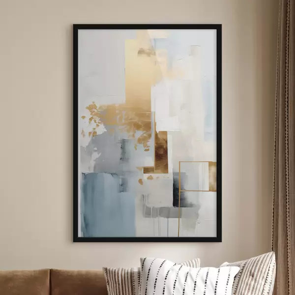 Poster Abstrakte geometrische Formen in Gelb, Blau und Weiß, strukturierte und minimalistische Komposition Nr f47881