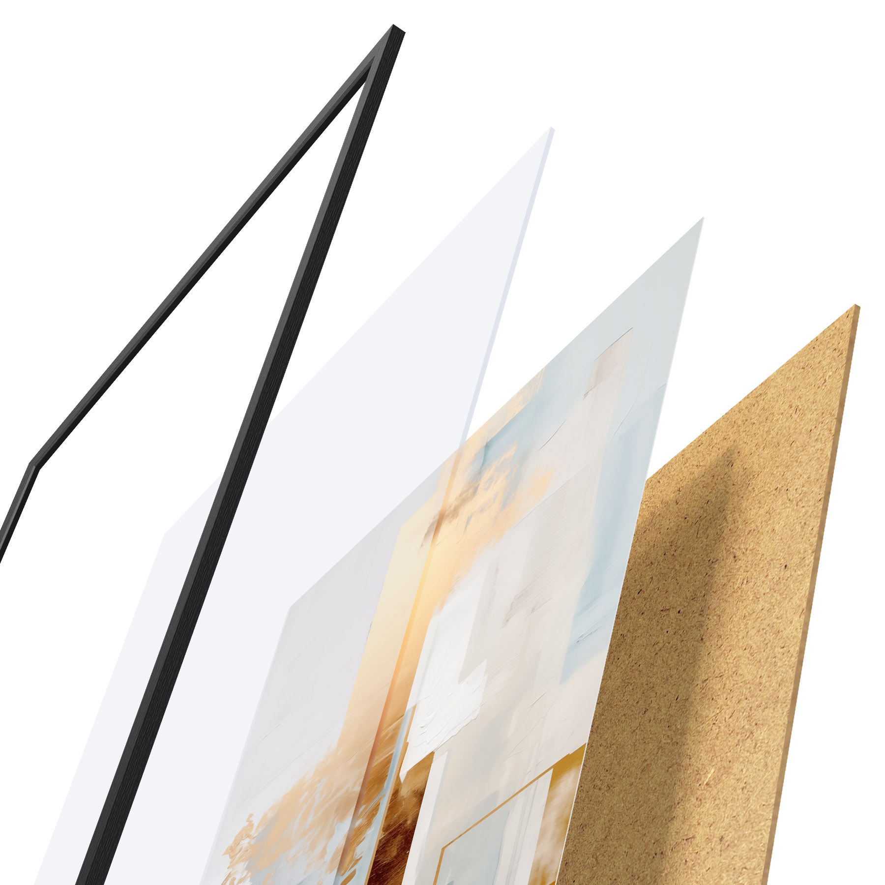 Das Poster besteht aus einem Rahmen, Plexiglas, einem gedruckten Bild und einer Rückwand aus Spanplatten. Dank der Halterungen auf der Rückseite kann das Poster sofort an die Wand gehängt werden.