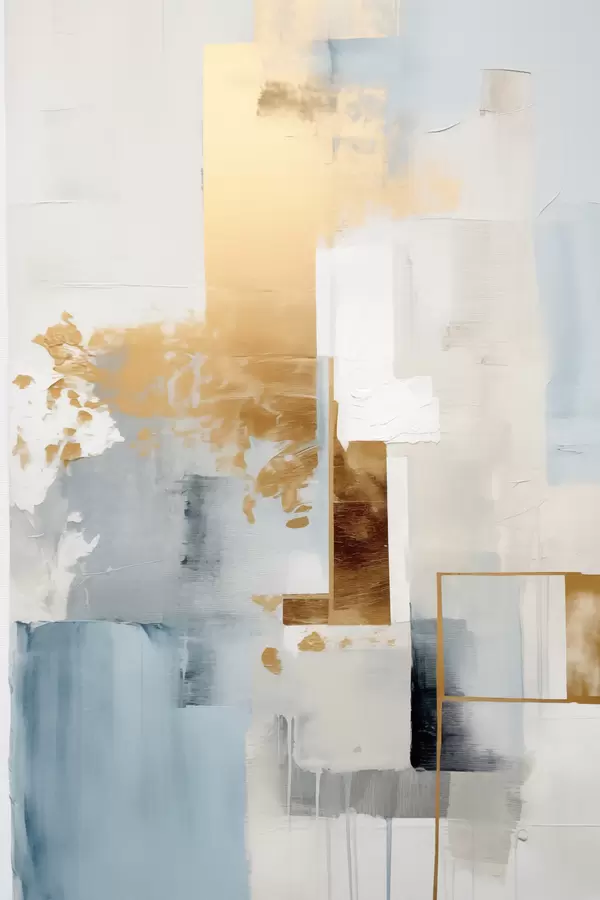 Poster Abstrakte geometrische Formen in Gelb, Blau und Weiß, strukturierte und minimalistische Komposition Nr f47881
