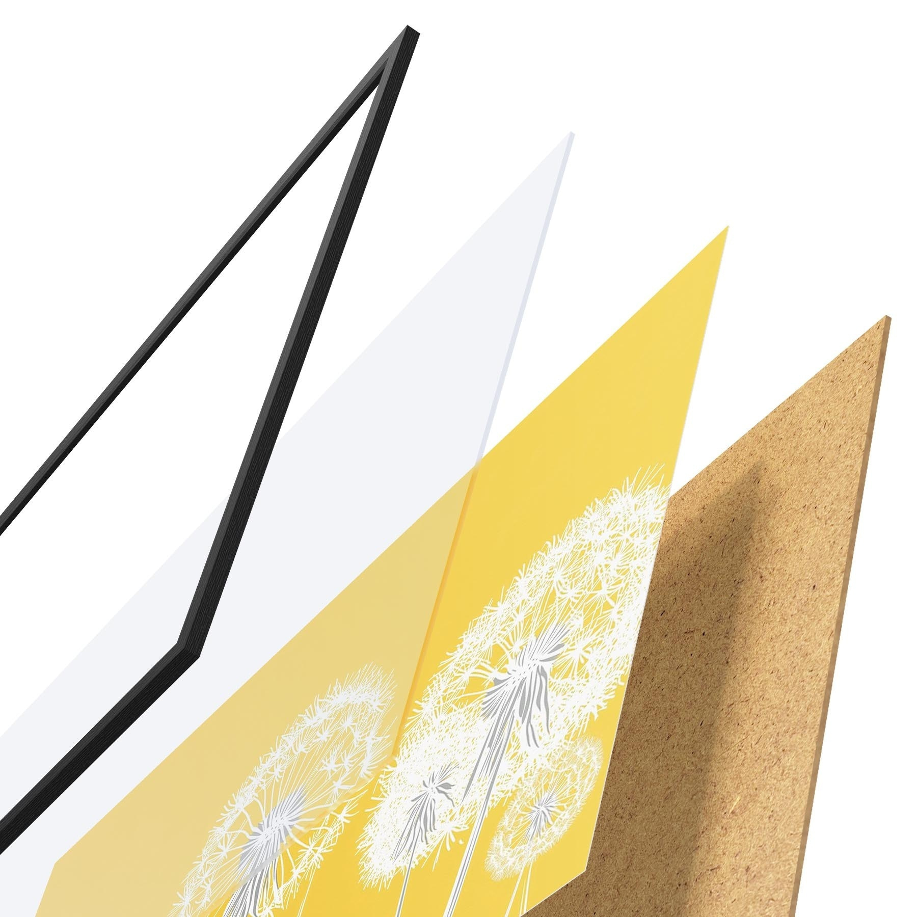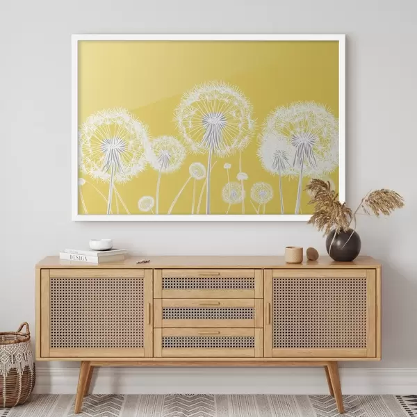 Poster Weiße Löwenzahnblüten auf gelbem Hintergrund Nr f47890