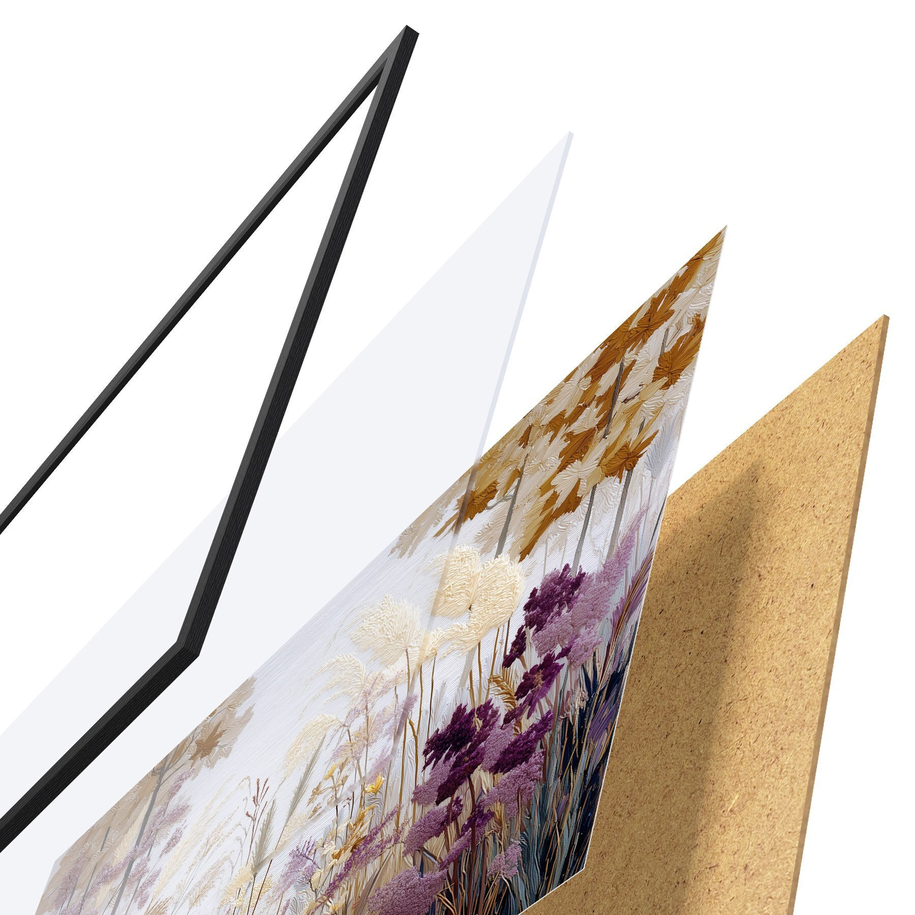 Das Poster besteht aus einem Rahmen, Plexiglas, einem gedruckten Bild und einer Rückwand aus Spanplatten. Dank der Halterungen auf der Rückseite kann das Poster sofort an die Wand gehängt werden.