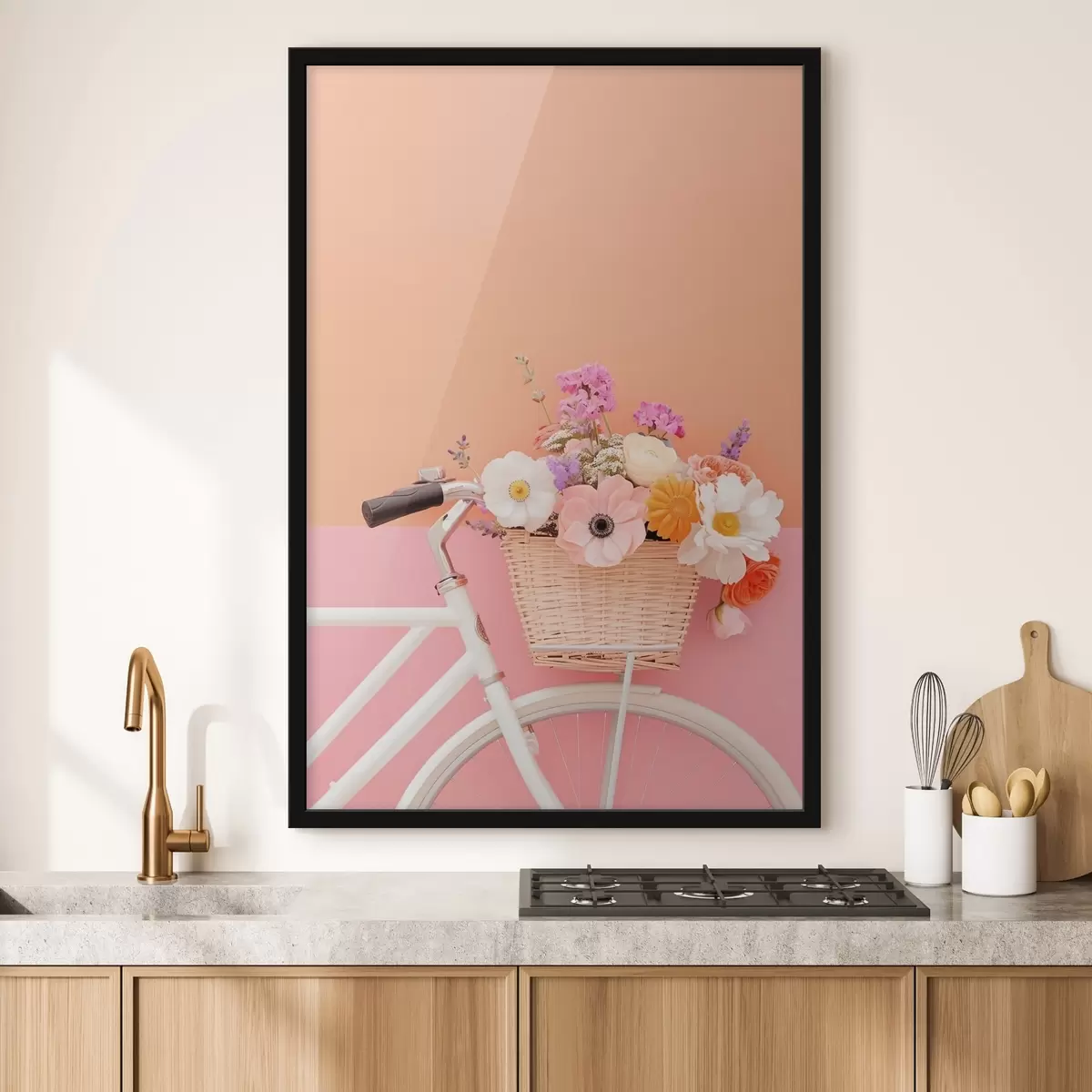 Poster Blumenkorb im provenzalischen Stil, Fahrrad f47895